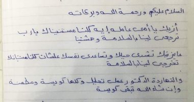 تداول رواد مواقع التواصل الاجتماعى، خلال الساعات القليلة الماضية، رسالة مكتوب بخط اليد، من ابن، لوالدته، الموجود بإحدى مستشفيات عزل الكورونا، حيث تضمنت الرسالة كلمات مؤثرة، ومشجعة من الابن إلى والدته، يطلبها فيها بأن تقاوم المرض، ويطمئنها بأن حالتها الطبية مستقرة، وأن أبناءه ينتظرونها، وكتب الشاب والذى يدى محمد، لوالدته، “ازيك يا أمى.. عاملة ايه.. كلنا مستنينك.. يارب ترجعى لينا بالسلامة.. وحشتينا.. عايزنك تشدى حيلك وتساعدى نفسك علشان كلنا مستنينيك وتخرجى لينا بالسلامة”
