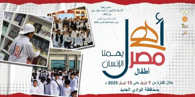 ينفذ الأسبوع الثقافي تحت إشراف لاميس الشرنوبي، رئيس إقليم القاهرة وشمال الصعيد الثقافي والمدير التنفيذي لمشروع “أهل مصر – أطفال”، وذلك ضمن برنامج الإدارة المركزية للدراسات والبحوث برئاسة د. حنان موسى، رئيس اللجنة التنفيذية للمشروع، بالتعاون مع إقليم وسط الصعيد الثقافي بإدارة جمال عبد الناصر، وفرع ثقافة الوادي الجديد برئاسة ابتسام عبد المريد.
