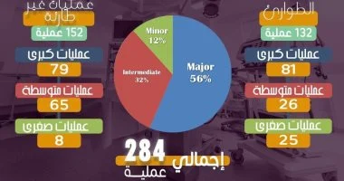 من جانبه، أوضح الدكتور مجدي القاضي، عميد كلية الطب البشري ورئيس مجلس إدارة المستشفيات الجامعية، أن العمليات التي تم إجراؤها تنوعت بشكل كبير بين 160 عملية كبرى، و91 عملية متوسطة، و33 عملية صغرى هذه العمليات شملت حالات طارئة وأخرى غير طارئة في تخصصات متنوعة مثل الجراحة العامة، جراحة الأورام، وجراحة المناظير، مما يعكس تنوع الخبرات الطبية التي توفرها المستشفيات الجامعية.