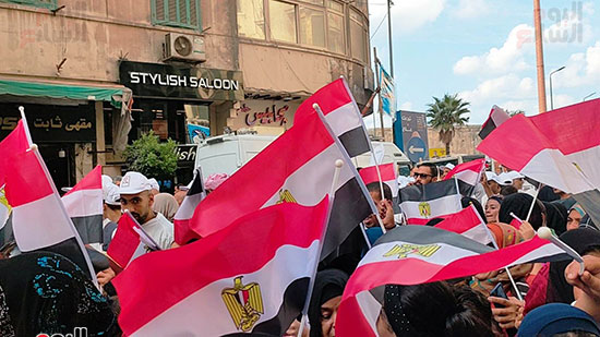 وسارت المسيرة فى شوارع وسط اسكندرية حاملين الاعلام والاغاني الوطنية وصولا إلى ميدان القائد إبراهيم للمشاركة فى احتفالات الذكرى الـ50 لنصر أكتوبر المجيد.