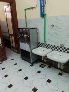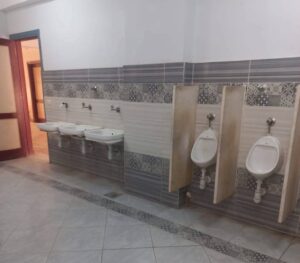 كما تم الانتهاء من تجهيز المرافق الأساسية مثل دورات المياه وتجديد شبكات الكهرباء.