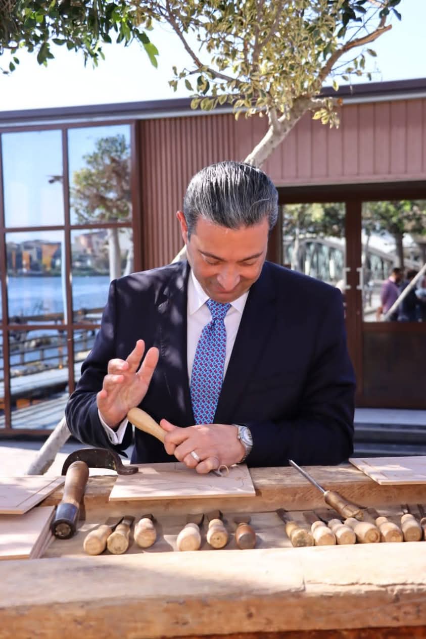 الدكتور أيمن الشهابى يشارك بتجربة للنحت على الخشب مُعلناً إطلاق حزمة من الإجراءات لإحياء هذه الحرفة اليدوية والتراثية التى تشتهر بها دمياط