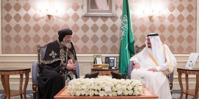 التقى البابا تواضروس ، بابا الإسكندرية، بطريرك الكرازة المرقسية، خادم الحرمين الشريفين، الملك سلمان بن عبدالعزيز آل سعود، الجمعة.