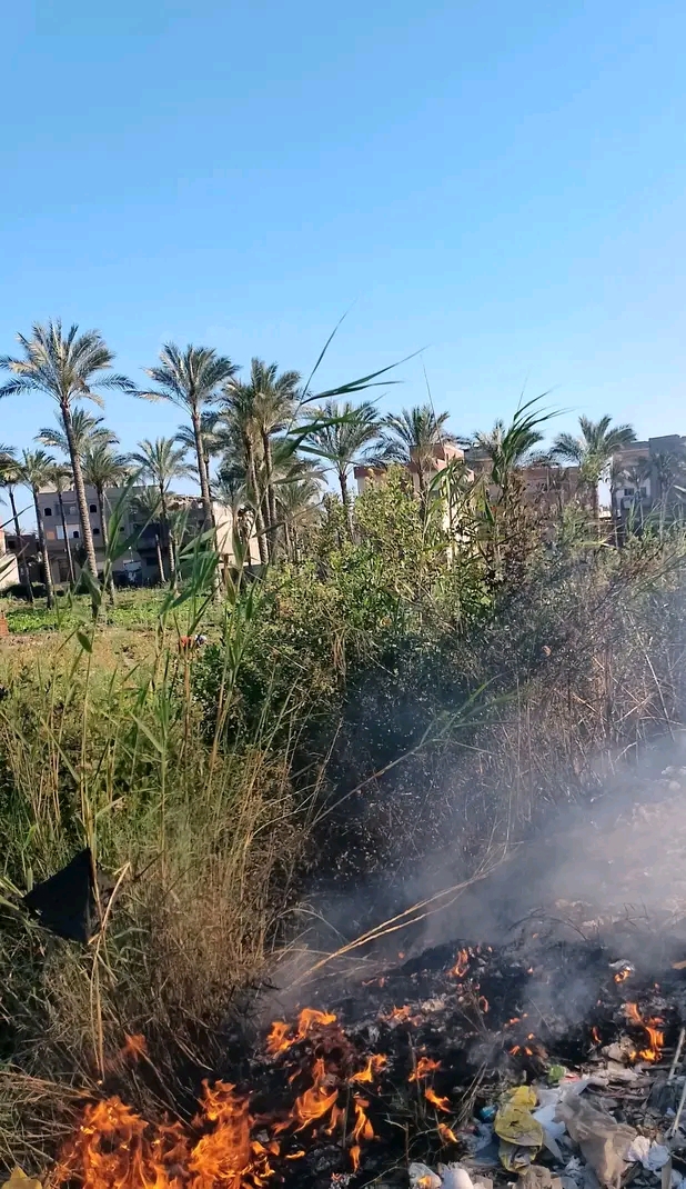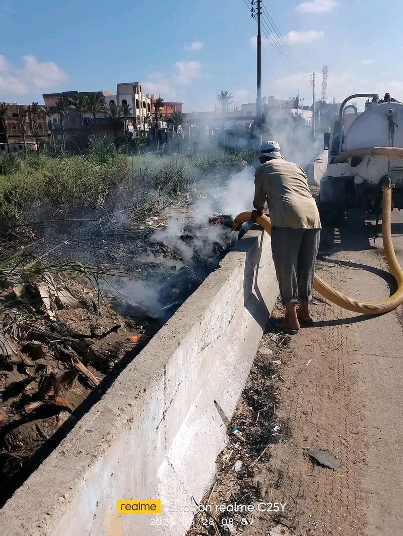 التدخل السريع من مجلس مدينة كفر البطيخ : والسيطرة على حريق بطريق الميناء قبل المعهد الدينى