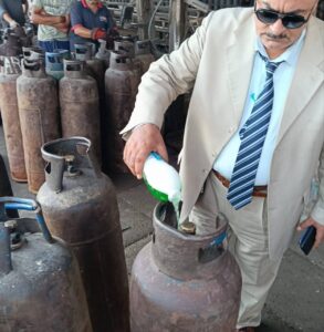 كما تم اختبار الأسطوانات للتأكد من صلاحيتها وصلاحية المحابس وعدم وجود عيوب بالاسطوانات حفاظا على سلامة المواطنين مستخدمى أسطوانات الغاز وشدد مدير المديرية على المخالفين أنه لا تهاون فى الحفاظ على الدعم المقدم للمواطنين وأنه سيتم المرور بصفه مستمره للتصدى لأى محاولات للتلاعب بتلك المنظومة