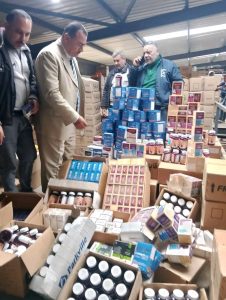 تنفيذًا لتوجيهات الأستاذ الدكتور أيمن الشهابى محافظ دمياط، بإحكام الرقابة على الأسواق و المنشآت المختلفة للتأكد من سلامة السلع والحفاظ على صحة وسلامة المواطنين، نفذت مديرية التموين و التجارة الداخلية اليوم برئاسة الأستاذ مجدى عبد الكريم، حملة اليوم أسفرت عن ضبط مخزن بدون ترخيص به كميات كبيرة من الأدوية والمكملات الغذائية، علاوة على احتوائه لسرنجات وقطع غيار سيارات وبن وحفاضات للأطفال ومعطرات جو و مستلزمات أخرى مختلفه.