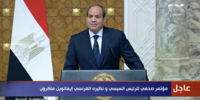 قال الرئيس عبد الفتاح السيسى، إنه ناقش مع الرئيس الفرنسى إيمانويل ماكرون قضية حل الدولتين للواضع الراهن موضحا أنه أمر تم التوافق عليه خاصة غياب الأفق السياسى لحل الأزمة الفلسطينية أحد التداعيات للأزمة اللى شوفنها ومش بس الجولة دي.. ده فى 5 جولات سابقة من الصراع خلال آخر 20 سنة.. غياب الأمل وحالة الإحباط واليأس.. أسباب أدت إلى الاقتتال”.
