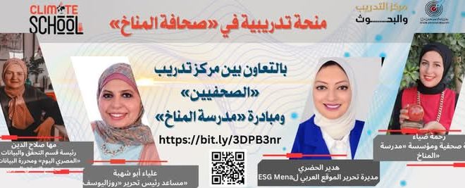 أعلن مركز التدريب والبحوث بنقابة الصحفيين المصرية عن منحة تدريبية مقدمة للصحفيين حول صحافة المناخ وذلك بالتعاون مع مبادرة مدرسة المناخ.