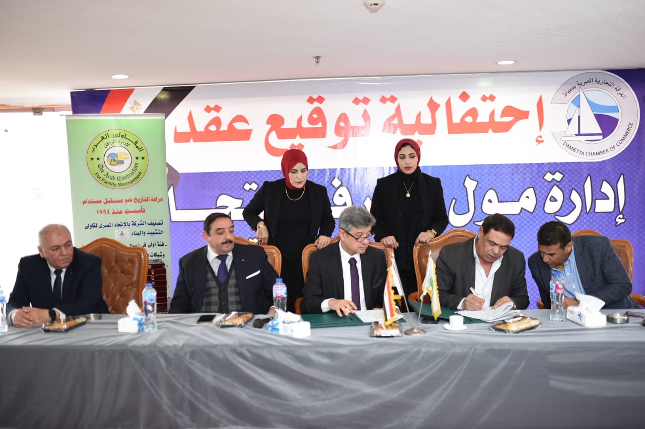 عقدت غرفة دمياط التجارية، برئاسة محمد عبد اللطيف فايد، اليوم مؤتمرًا موسعًا بمقرها بالقاهره الجديده بحضور أعضاء مجلس إدارة الغرفة، وعدد كبير من أعضاء المجلس السابقين وتجار الأثاث، للإعلان عن توقيع بروتوكول تعاون مشترك مع شركة المقاولين العرب لإدارة المولات.