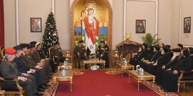 الفريق أول “عبدالمجيد صقر” القائد العام للقوات المسلحة وزير الدفاع والإنتاج الحربى يهنئ البابا تواضروس الثانى بمناسبة عيد الميلاد المجيد