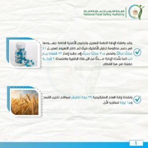 وقد واصلت الإدارة العامة لتسجيل وترخيص الأغذية الخاصة جهودها في دعم منظومة تداول الأغذية، حيث تم خلال الاسبوع تسجيل 41 منتجًا غذائيًا وفحص 305 منتجًا جديدًا، إلى جانب إصدار 22 شهادة بيع حر، كما نفّذت الإدارة عددًا من الزيارات الرقابية واعتمدت 2 شركة عاملة في هذا القطاع.