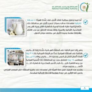 أما فيما يتعلق بمراقبة قطاع الألبان، فقد نفّذت الهيئة 8 حملات تفتيشية استهدفت محالب ومراكز تجميع الألبان في محافظات ذات كثافة إنتاجية عالية، شملت البحيرة، الدقهلية، القليوبية، الفيوم، الاسكندرية، الشرقية والغربية، وذلك بهدف التحقق من مدى الالتزام باشتراطات سلامة وجودة الألبان في مختلف مراحل التداول.