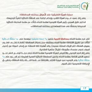 وفي إطار جهود فروع الهيئة لتشديد وإحكام الرقابة على المنشآت الغذائية تنفيذًا لتوجيهات الدكتور طارق الهوبي، رئيس الهيئة القومية لسلامة الغذاء، للتأكد من سلامة المنتجات الغذائية المعروضة وحفاظًا على صحة المستهلكين بمختلف المحافظات،
