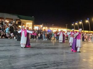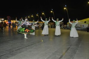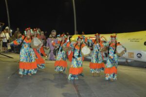 وقدمت فرقة كفر الشيخ للفنون الشعبية مجموعة مميزة من اللون الشعبى، منها “تنورة، بدوى، نغمات صعيدية، حضرة، نوبى، غزل فلاحى، أفراح الحصاد”، براس البر ودمياط الجديدة