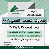 تقام الجمعة القادمة 26 فبراير انتخابات التجديد النصفى لمجلس النقابة الفرعية للمهندسين بالاسكندرية من الساعة 9 صباحا وحتي الساعة 5 مساءا والمقامة بنادى النقابة بسابا باشا بالإسكندرية، حيث يختار المهندس ورقة النقابة الفرعية الخاصة به بالكامل و الورقة الثانية يختار شعبتة فقط . يذكر ان هناك منافسة شديدة بين قائمة المهندسين المتحدين، وقائمة مهندس واحد‘ حيث تضم قائمة المهندس أحمد الغمري، رئيس قطاع الإضاءة بالإسكندرية، والمهندس محمد الدقاق نائب رئيس هيئة الميناء، والمدير السابق للإسكان بالمحافظة، وشريف الدقاق عضو هيئة التدريس بكلية الهندسة قسم العمارة. فيما تضم قائمة مهندس واحد كلا من هند الحريري نجلة الراحل أبو العز الحريري، كما تضم اسلام شامة وسمير طنطاوى وعبير يوسف إحدى قيادات حزب الدستور سابقا وعضو مجلس النقابة الحالي. يذكر ان المهندس احمد الغمري رئيس قطاع الاضاءة قد اعلن عن تكوين مجموعة المهندسين المتحدون لخوض انتخابات مجلس ادارة النقابة الفرعية للمهندسين بالاسكندرية وكذلك قائمة لخوض انتخابات الشغب بالنقابة العامة للمهندسين ومن اهم اهداف المجموعة المطالبة بكادر المهندسين وزيادة بدل التفرغ وتطوير الخدمات المقدمة للمهندسين وايجاد فرص عمل لشباب المهندسين وزيادة المعاشات. هذا وقد دعى الغمرى جموع المهندسين لمساندة هذه المجموعة التي تضم الخبرة مع الشباب .