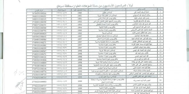 صرح الدكتور اسماعيل عبد الحميد طه محافظ دمياط بأنه قد تمت الموافقة علي ترشيح عدد 147 من ذوى الاعاقة للتعيين من إجمالى 500 علي مستوى الجمهورية ضمن نسبة ال5%بقرار السيد المهندس رئيس مجلس الوزراء في 25/10/2015 متضمنة 31 فرصة تعيين للمؤهﻻت العليا و91 للمؤهﻻت المتوسطة و 2 أقل من المتوسط و23دون المؤهل .. والأسماء مبينة بالكشف المرفق.