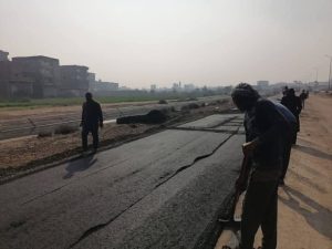 بدء أعمال الرصف بالأسفلت بطريق رأس البر الغربي