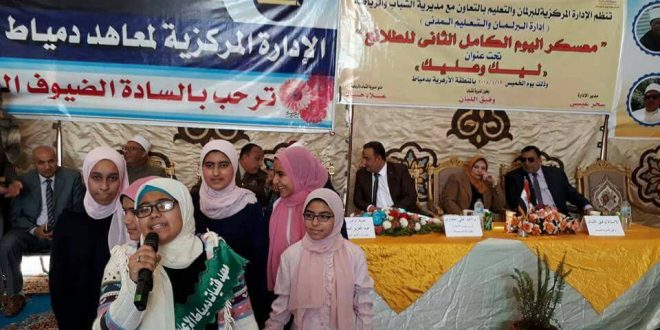 تحت رعاية الدكتور إسماعيل عبد الحميد طه محافظ دمياط نظمت مديرية الشباب والرياضة برئاسة علاء جاد بالتعاون مع الإدارة المركزية للبرلمان والتعليم المدنى معسكر اليوم الكامل الثانى للطلائع بالمنطقة الازهرية يوم الخميس الماضي وذلك بمشاركة نحو ٢٠٠ طليع من المحافظة