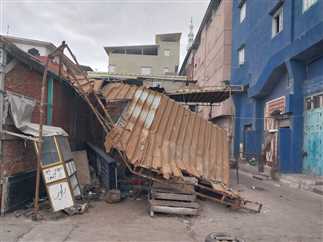 بسبب سرعة الرياح سقوط مظلات ولافتات إعلانية بدمياط دون خسائر بشرية