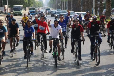 وصرح بأن إقامة الفعاليات والماراثونات من أمام المشروعات القومية يعطي صورة إيجابية والتأكيد علي أهمية الرياضة للشباب والمشاركة المجتمعية ، مشيراً أنه جاري التجهيز للمرحلة الثالثة من مبادرة ” دراجتك ..صحتك ” .