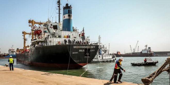 ووصل رصيد صومعة الحبوب والغلال للقطاع العام بالميناء من القمح 136279 طنًا … بينما بلغ رصيده في مخازن القطاع الخاص 97776 طنًا .