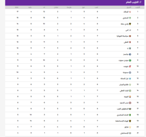 وجاء ترتيب الدوري كالتالي: