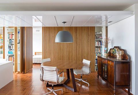 منطقة اطلاع و مكتبة صغيرة : استخدم المصمم هنا التصميم البسيط و الصغير لوضع مكان اطلاع داخل فراغ غرفة المعيشة بتصميم انيق دون ان يخصص لها مساحة مستقلة .