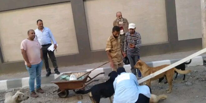 حيث قام فريق العمل بتطعيم الكلاب بالامصال ضد مرض السعار ، وتستمر تلك الحملة لتحقيق أهدافها نحو تطعيم جميع الكلاب وذلك للحفاظ على صحة المواطنين وسلامتهم .