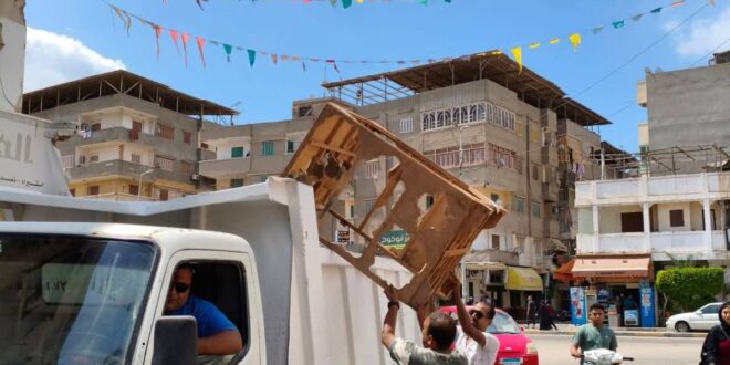 حملة لرفع الإشغالات بشوارع حي أول وثانى مدينة دمياط