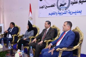 ومن جانبه،، توجه “الأستاذ ياسر عمارة” بالشكر الى الدكتور أيمن الشهابى على دعمه الدائم للمنظومة التعليمية ، و توجه أيضًا بالتهنئة إلى المعلمين الجدد بالدفعة الثالثة من مشروع ” 30 ألف معلم ” الذى يجسد رؤية الدولة المصرية بتحقيق انطلاقة جديدة بمسيرة التنمية التعليمية ، ودعاهم إلى بذل أقصى الجهود لدعم هذه الرؤية ليكونو قدوة من التفاني والإخلاص ، كما دعا المعلمين الجدد والقدامى لأداء قسم الرسالة التعليمية .
