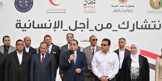 ووجه رئيس الوزراء الشكر لصندوق “تحيا مصر” على تنظيم هذه القافلة، وإدارتها والمساهمة فيها، وكذا الجهات المختلفة المشاركة مع الصندوق سواء التابعة منها للدولة أو للمجتمع المدني، أو من المواطنين، مشيراً إلى المكونات المتنوعة لهذه القافلة، وما تتضمنه من أدوية ومواد غذائية، ومستلزمات طبية، وسيارات إسعاف، وكذا معدات طبية لازمة للعمليات الجراحية.