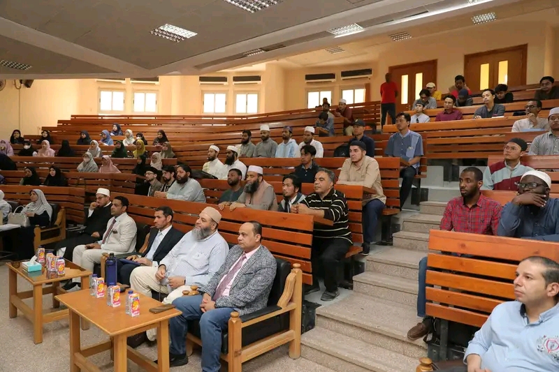 وقدم الاحتفالية الدكتور أحمد حسن، الأستاذ المساعد بقسم التفسير، وأشاد رئيس الجامعة بهذا النشاط العلمي الكبير الذي يقوم عليه صرح علمي متميز من صروح الجامعة وهو كلية العلوم الإسلامية للوافدين.