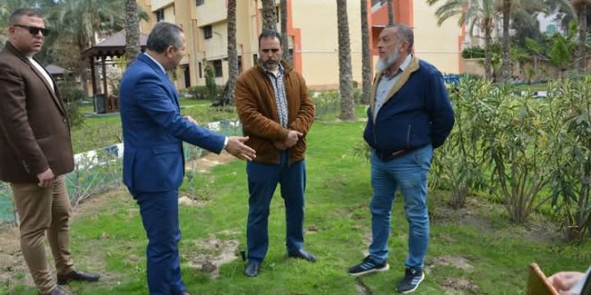 حيث تفقد رئيس الجامعة المساحات الخضراء داخل المدينة الجامعية مشيرًا إلى الاهتمام بتحسين المنظر الجمالي لها مع ضرورة الاهتمام بتحسين جودة الحياة بداخل الجامعة.