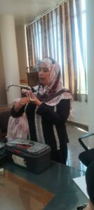 لشركة المياه للإبلاغ عن أي شكاوى تخص جودة المياه. تلا ذلك ورشة تدريبية عملية في أعمال السباكة لتعليم السيدات كيفية تصليح الحنفيات والأدوات الصحية، بما يسهم في ترشيد الاستهلاك وخفض الهدر.