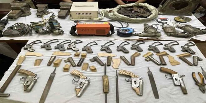 وإستهدافت الورشة عقب تقنين الاجراءات الورشة المشار إليها وأمكن ضبطهما وبحوزتهما 4فرد محلى وأجزاء أسلحة مختلفة وأدوات لتصنيع وتصليح الأسلحة النارية.