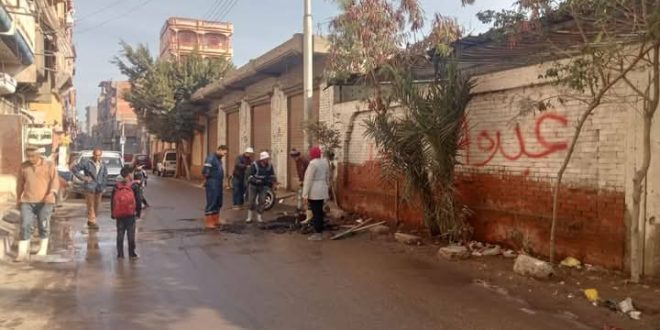 صيانه واصلاح خط مياه الشرب بشارع الوحده الاجتماعيه بالتنسيق مع شركه مياه الشرب والصرف الصحى بمدينة كفر البطيح