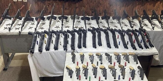 وزنت 1,050 كيلو جرام – بندقية آلية- طبنجة وعدد من الطلقات مختلفة الأعيرة بحوزة 3 متهمين لهم معلومات جنائية.