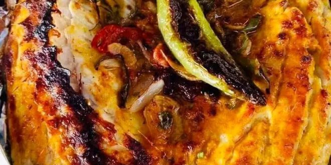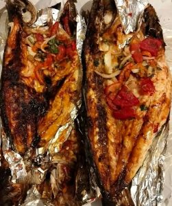 – يُتبل السمك بالملح والفلفل الأسود والكمون وزيت الزيتون والتوم المفروم.