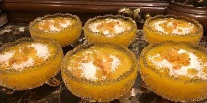 ويترك الخليط حتى الغليان على النار وتصب المهلبيه في كاسات التقديم