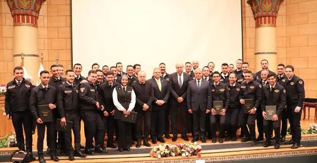 و قام الدكتور سامح الحفني و الطيار منتصر مناع و الطيار عزت متولي بتسليم شهادات التخرج لعدد من خريجي كلية المراقبة الجوية .