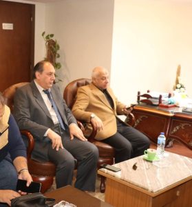 استقبل الأستاذ محمد عبد اللطيف فايد رئيس مجلس إدارة الغرفة التجارية بمحافظة دمياط السيد مايكل جمال قديس المدير الاقليمي للغرفة العربية البرازيلية ورانيا هجرس مديرة العلاقات الدولية، وذلك لبحث سبل التعاون بين الجانبين