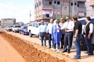 حيث تابع ” الدكتور أيمن الشهابى ” الاعمال الجارية التى تشمل تغطية ترعة عزبة البرج وتطوير الطريق وازدواجه ، وتابع ” المحافظ ” أعمال التجهيز للرصف بداية من مسجد الحطاب بطول ٦٠٠ متر والمحور الثانى بامتداد مدخل المدينة ، حيث تم تنفيذ أعمال الردم وطبقة الأساس بطول ٤ كم