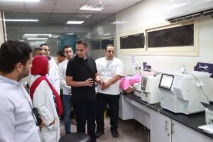 رافق نائب الوزير خلال الجولة الدكتور بيتر وجيه، مساعد الوزير للشؤون العلاجية، والمهندس عمرو عايد، مساعد الوزير لتكنولوجيا المعلومات والتحول الرقمي، والدكتورة مها ابراهيم، رئيس امانة المراكز الطبية المتخصصة، والدكتور احمد رزق نائب رئيس امانة المراكز الطبية المتخصصه، والدكتورة رشا الشرقاوي، رئيس الإدارة المركزية للإدارة الاستراتيجية، والدكتور محمد عبد الحكيم، رئيس الإدارة المركزية للرعاية العلاجية، والدكتور محمد الصدفي، رئيس الإدارة المركزية للرعاية العاجلة، والدكتور أحمد عمر، مدير الإدارة العامة للمراجعة الداخلية والحوكمة، والدكتور محمد عبد الخالق، مدير مديرية الشؤون الصحية، والدكتورة رشا مصلح، مدير فرع التأمين الصحي بدمياط الدكتور محمد الغباشي، مدير ادارة القوافل العلاجية بالوزارة.