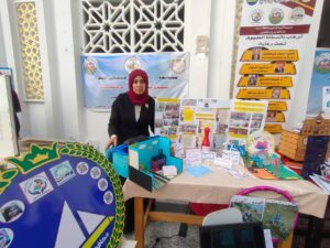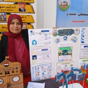 الأستاذة مروة المنسي، معلم علوم بمدرسة الإيمان الخاصة مجموعة 30 يونيو بإدارة دمياط، بمشروع “مختبر التنمية المستدامة من خلال المواد الدراسية”.