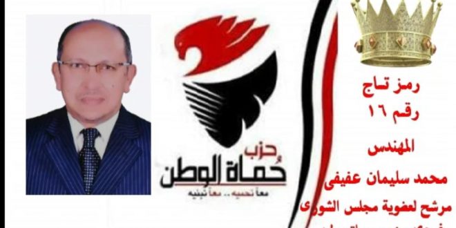قبل غلق باب الترشح المــهندس “مــحمد سليمان عفيفــي ” مرشحاً لحزب حماة الوطن رقم16 رمز تاج لــ يربك حسابات المرشحين في اللحظات الاخيرة