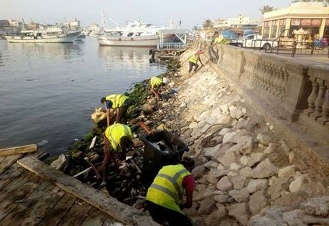 قطاع اللسان يقوم بحملة نظافة مكبرة لكورنيش النيل برأس البر