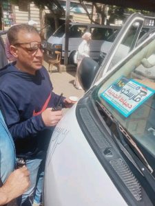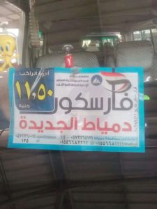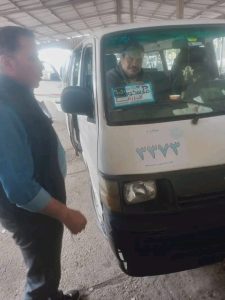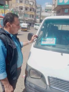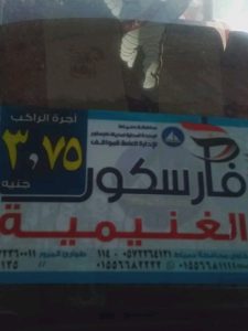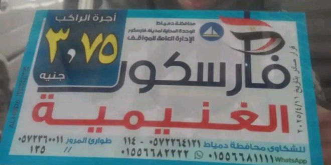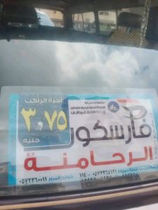 لصق استيكرات بتعريفة الركوب على كل سيارات الاجره بموقف مدينة فارسكور وذلك لعدم اختلاف السائق مع الركاب