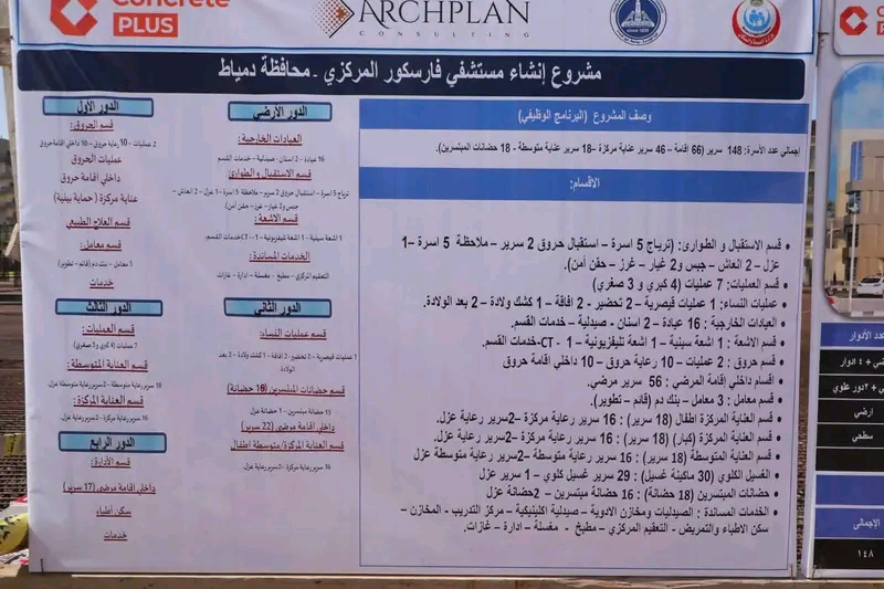 كما تم تخصيص “مقر مؤقت” داخل موقع المشروع، حيث يُقدم خدمات: “العناية المركزة”، و”غسيل الكلى”، و”الحضانات للأطفال حديثي الولادة”، كما يجري تجهيز مبنى “قسم الحميات” ضمن الخدمات المؤقتة، في إطار خطة متكاملة لضمان عدم انقطاع الرعاية الصحية للمواطنين.
