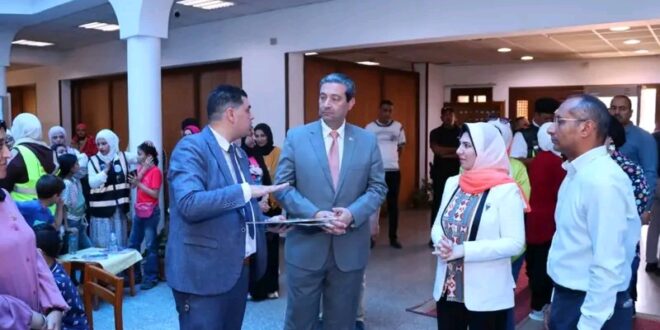 حيث اطلع ” المحافظ ” على ما تتضمنه الأنشطة من برامج توعوية للأطفال والنشء، حيث تضمنت أنشطة فكر ولون واكتب و السلم والدخان، علاوة على نشاط حكى قصة انت البطل ورسم على الوشوش وكذا رسم جماعى للأطفال على جدارية كتصميم ابتكارى عن مكافحة التدخين و رسومات فنية عن اضرار التدخين بالتنسيق مع مديرية التربية والتعليم.