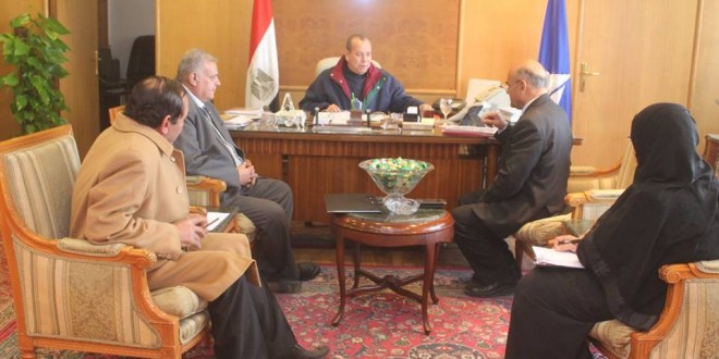 بحث الدكتور إسماعيل عبد الحميد طه محافظ دمياط مع المهندس سيد ربيع رئيس قطاع مياه الشرب والصرف الصحى مشكلة الصرف بمجزر فارسكور والمجاور للمدرسه الابتدائيه وذلك بحضور د.حسن غراب مدير عام الطب البيطرى وم.مجدى حطب رئيس مركز ومدينة فارسكور .